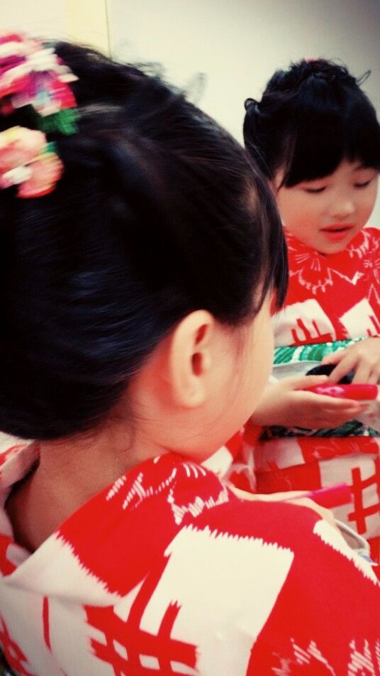 浴衣&セット 石垣 喜久子 2017-08-18 (金) 先日の夏祭り 踊りを披露する為 お揃いの浴衣に着付け 髪も可愛くセット お化粧は自分でするそうです!! 今までは恥ずかしくてステージに立てませんでしたが 上手に踊れました。 娘でした!! 美容師になりたいそうです(笑) 浴衣の着付け、ヘアセット 是非お問い合わせください☆